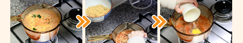 ① 신라면을 끓이다가 면을 덜어내요.