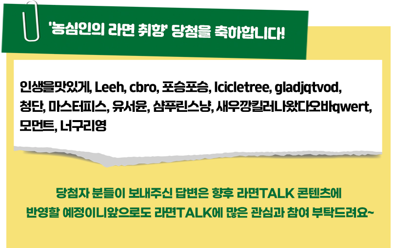 참여의 기회는 언제나 열려 있으니 아래 버튼을 클릭해 여러분의 라면 킥을 소개해주세요.